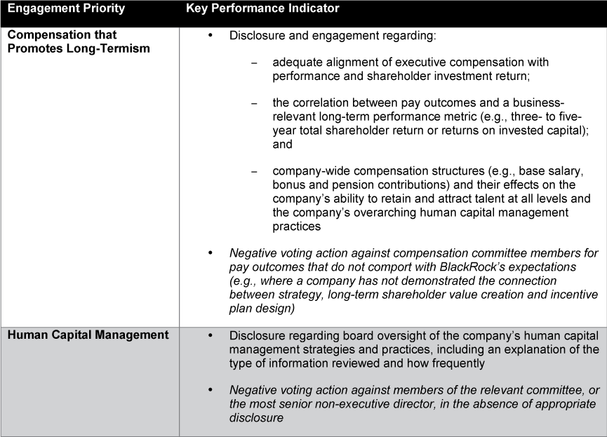 BlackRock’s Engagement Priorities and Corresponding KPIs