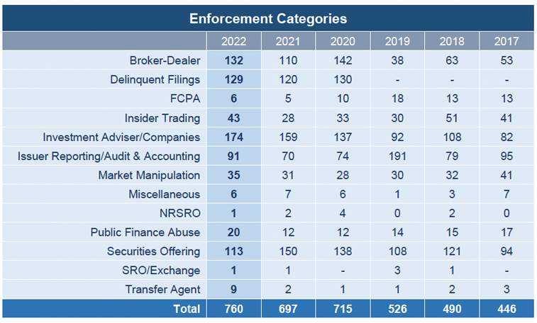 On November 15, 2022, the U.S. Securities and Exchange Commission (SEC) released its enforcement results for the 2022 fiscal year (October 1, 2021 – September 30, 2022).