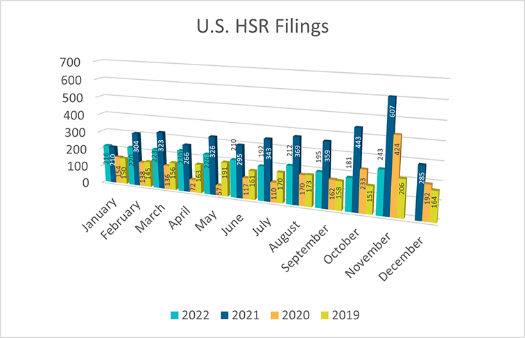 U.S. Antitrust Enforcement — A Year in Review: In 2022, the Federal Trade Commission (FTC) and the U.S. Department of Justice Antitrust Division (DOJ) continued an aggressive approach toward merger review that has thus far defined the Biden administration’s antitrust enforcement strategy. In January 2022, Assistant Attorney General Jonathan Kanter delivered a speech in which he expressed strong opposition to merger remedies to address competition concerns. Instead, he noted, when the DOJ concludes that a merger is likely to lessen competition, it should sue to block the deal outright. This message permeated the DOJ’s merger review approach this year as it did not settle a single merger investigation by consent decree. The FTC did not take the same rigid stance and settled several matters, but it continued its practice of requiring acquirers to obtain “prior approval” from the agency before closing any future transaction affecting each relevant market for which a violation was alleged. The agencies collectively filed 10 complaints to block alleged anticompetitive transactions, using both traditional theories of harm and more seldomly litigated theories of harm, from vertical foreclosure to buy-side power. Parties that litigated agency challenges saw mixed results, with an uptick in success in comparison to historical trends. Part of the deviation is attributable to the agencies’ willingness to bring cases that do not neatly align with tried and tested theories of harm, as discussed in our November issue.
