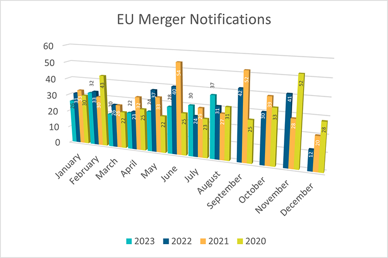 EC continues its review of below-thresholds deals: The EC recently increased its activity in its merger review of below-threshold deals under Article 22 of the EU Merger Regulation (EUMR). Article 22 EUMR gives the EC the power to review deals that do not meet notification thresholds set out in the EUMR but affect trade within the EU single market and threaten to significantly affect competition within the territory of the EU member state that refers the deal to the EC for review. In the space of five days in August 2023, the EC accepted two separate referrals, each from several EU member states, under Article 22 EUMR. The parties will now have to formally notify the deals to the EC.