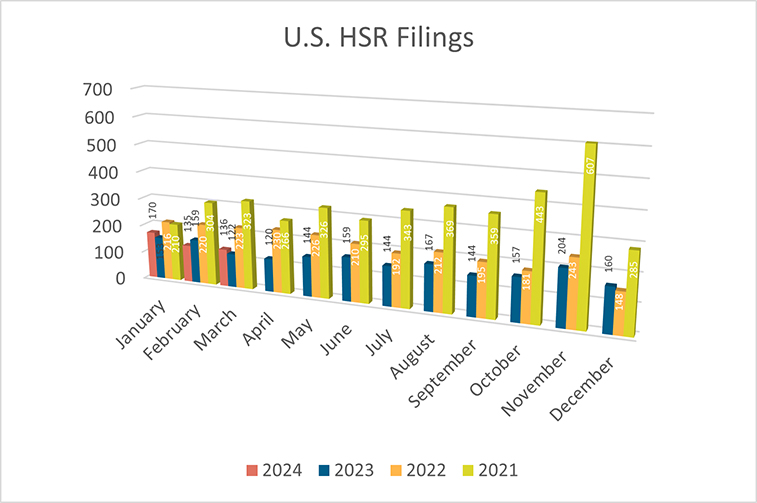 Changes to HSR form potentially “weeks” away: During the American Bar Association Antitrust Spring Meeting held from April 10–12, top agency officials stated that they expected final changes to the HSR form to be rolled out soon. DOJ Deputy Assistant Attorney General Andrew Forman stated his belief that these changes are coming in a matter of weeks, not months. Both he and Henry Liu, Director of the FTC’s Bureau of Competition, echoed concerns from agency staff regarding deficiencies in the current forms, though they previewed that the final amendments to the HSR form will differ materially from the proposed amendments the FTC announced last July. Liu noted that the new forms will likely require filing parties to provide information regarding supplier-customer relationships, as well as the transaction’s potential effect on labor markets.