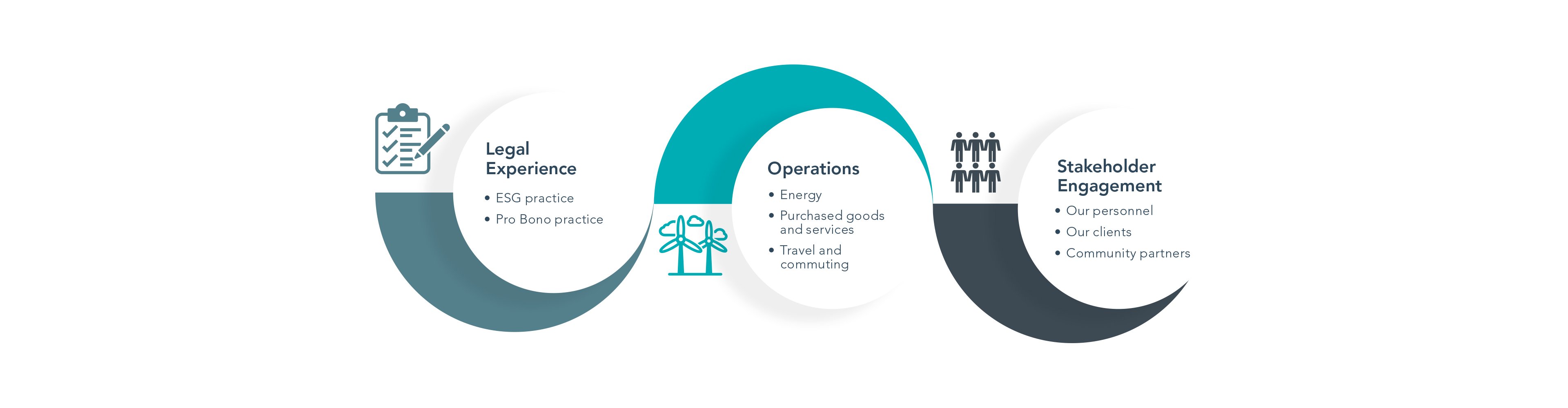 Over the years, we have made meaningful strides to address our impact on the environment. We adopted a Sustainability Position Statement, which outlines our approach to this important cause and reinforces our commitment to being part of the transition to a net zero economy. In addition, the position statement defines the most salient environmental issues impacting our firm, organized under a three-pillar framework: Legal Services, Global Business Operations, and Stakeholder Engagement. This framework will allow us to focus on what matters most and to be able to communicate our progress in a structured way.